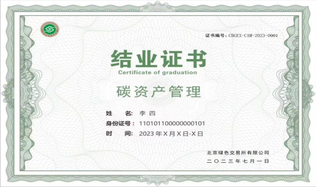 考試合格者,還將獲得“北京綠色交易所碳排放管理人才培訓結業證書”,該證書由北京綠色交易所頒發、認可并備案。持證人員可獲得北京綠色交易所和和廣西廣林碳匯科技產業有限公司相關信息資訊和業務咨詢等服務。